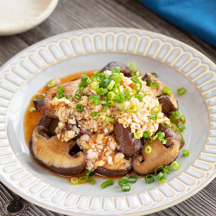 こんがりと焼いた肉厚なしいたけに、よだれ鶏風のねぎがたっぷりと入ったピリ辛なソースをかけた「よだれしいたけ」のレシピを紹介します。