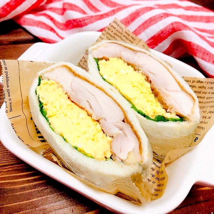 ラップで包むだけで簡単に作れる、ボリューム満点の照り焼きチキン卵サンドです。パクッと食べられて満足感もバッチリなので、お弁当にもぴったりですよ。