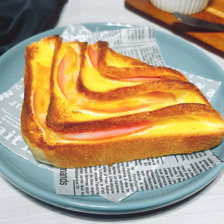 折り重なるチーズとハムの旨みがジュワ〜ッ!サクッと香ばしくて、食べ応えも満点。こんがり焼けた断面がたまらない……毎朝食べたくなるハムチーズトーストです。