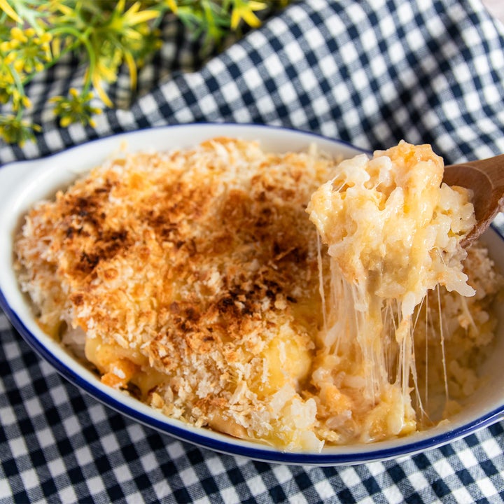 使うのは、スーパーで手に入る冷凍コーンクリームコロッケ。温めてつぶし、牛乳と混ぜるだけで、簡単に濃厚ホワイトソース風になります。あとはごはんにのせて、チーズとパン粉をかけて焼けば完成です。